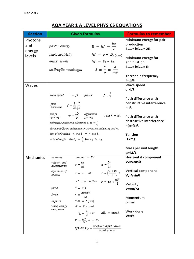 Physics formulas will help students to solve tough problems in the examinationSince physics is a numerical dominant subjectSolve NCERT Exercise with the help of NCERT Solutions for class 11 Physics and NCERT Solutions for class 12 Physics. A-level Physics data and formulae For use in exams from the June 2017 Series onwards Version 15 1. Formulas from all the chapters of Class 11 and Class 12 are equally important.