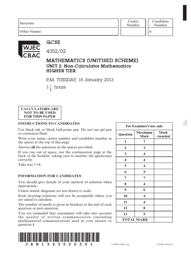 Gcse Wjec Math Past Paper 2013 P2 Sine Trigonometric Functions